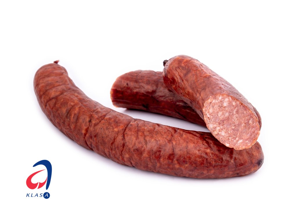 Výjimečná klobása s autentickou recepturou. Kombinace hovězího a vepřového masa, šťavnatého koření a jemného kouřového aroma. Užijte si příjemný gastronomický zážitek.