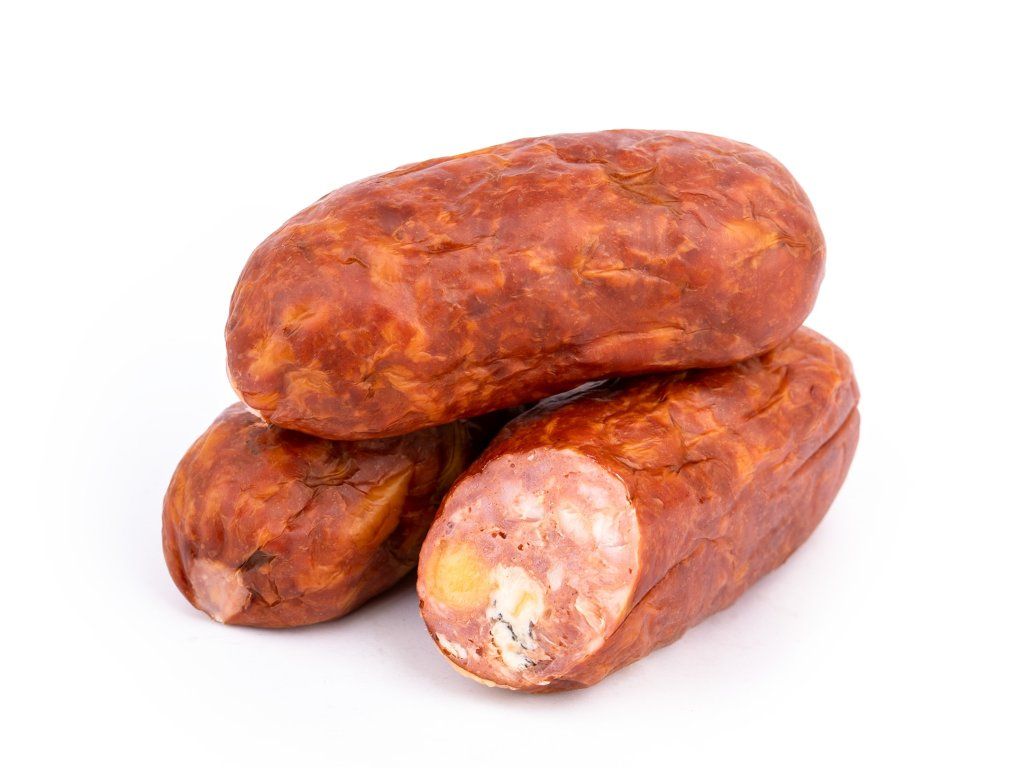 Složení: Vepřové maso 55%, hovězí maso 29%, SÝR 15% (Niva, Romadur, Gouda, Eidam), jedlá sůl, přírodní koření, stabilizátor: trifosforečnan pentasodný, antioxidant: erythorban sodný, barvivo: paprikový extrakt, dextróza, konzervant: dusitan sodný, jedlé přírodní střevo, kouř.